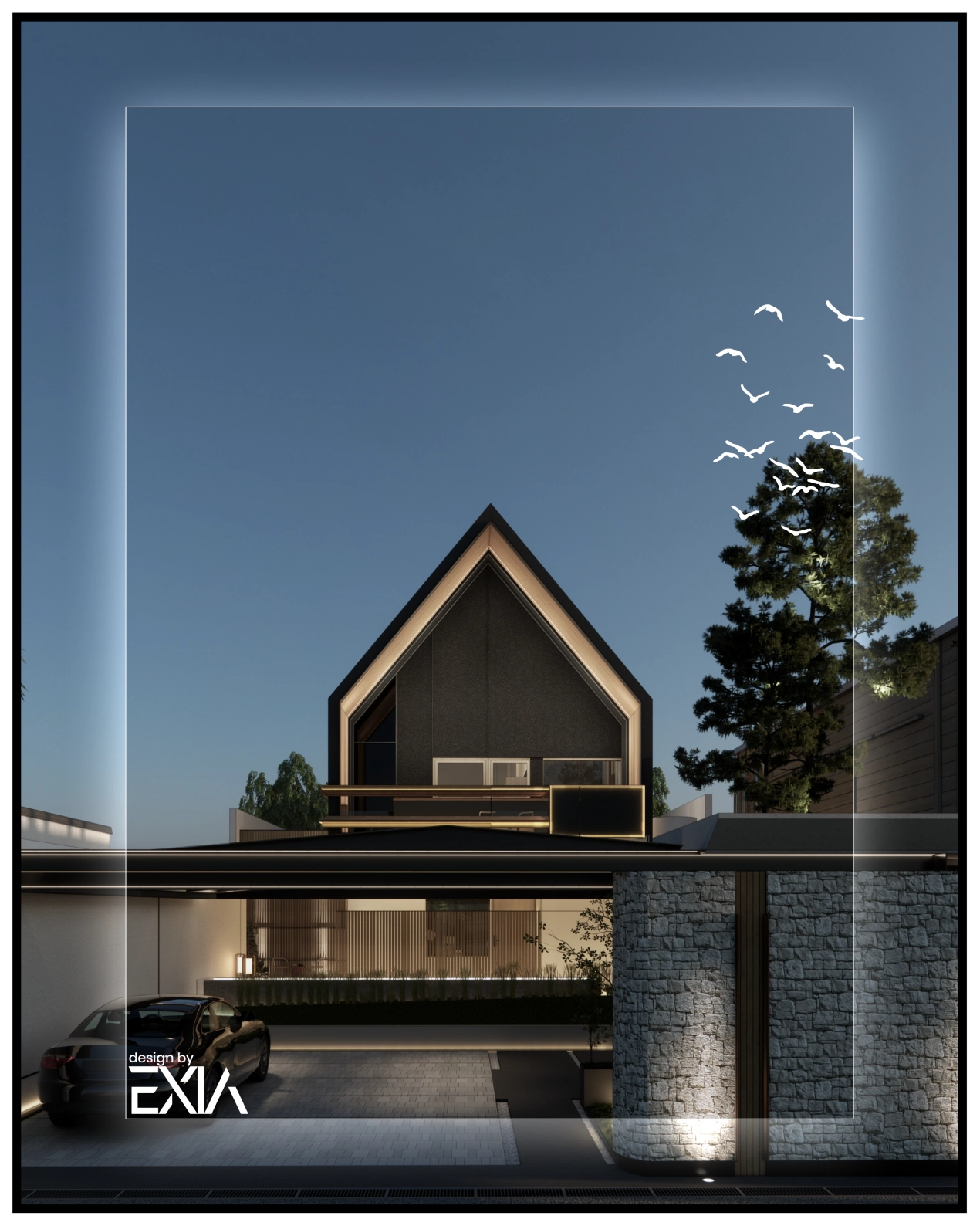 The design incorporates massive triangular shapes that appear to soar towards the constellations, evoking a sense of majesty and aspiration. The integration of linear elements enhances the luxurious aesthetic, creating a harmonious balance between bold geometry and refined elegance.